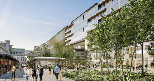 Début 2027, c’est un nouveau quartier qui sortira du sol parisien : 50 000 m2 de bureaux destinés à accueillir l’Agence française du développement (AFD), un hôtel 4 étoiles de 210 chambres, plus de 220 logements sociaux, intermédiaires et étudiants, 4 000 m2 de locaux SNCF, plus de 8 000 m2 d’espaces verts, 16 000 m2 de commerces ouverts sur la ville, 426 m2 de local associatif, un auditorium de 195 places, 2 300 m2 de plateforme logistique mutualisée pour la gestion des livraisons et des déchets, un parc public de stationnement et une aire de dépose-minute, une ferme photovoltaïque de 3 200 m2 (l’une des plus grandes implantations solaires privées de Paris).